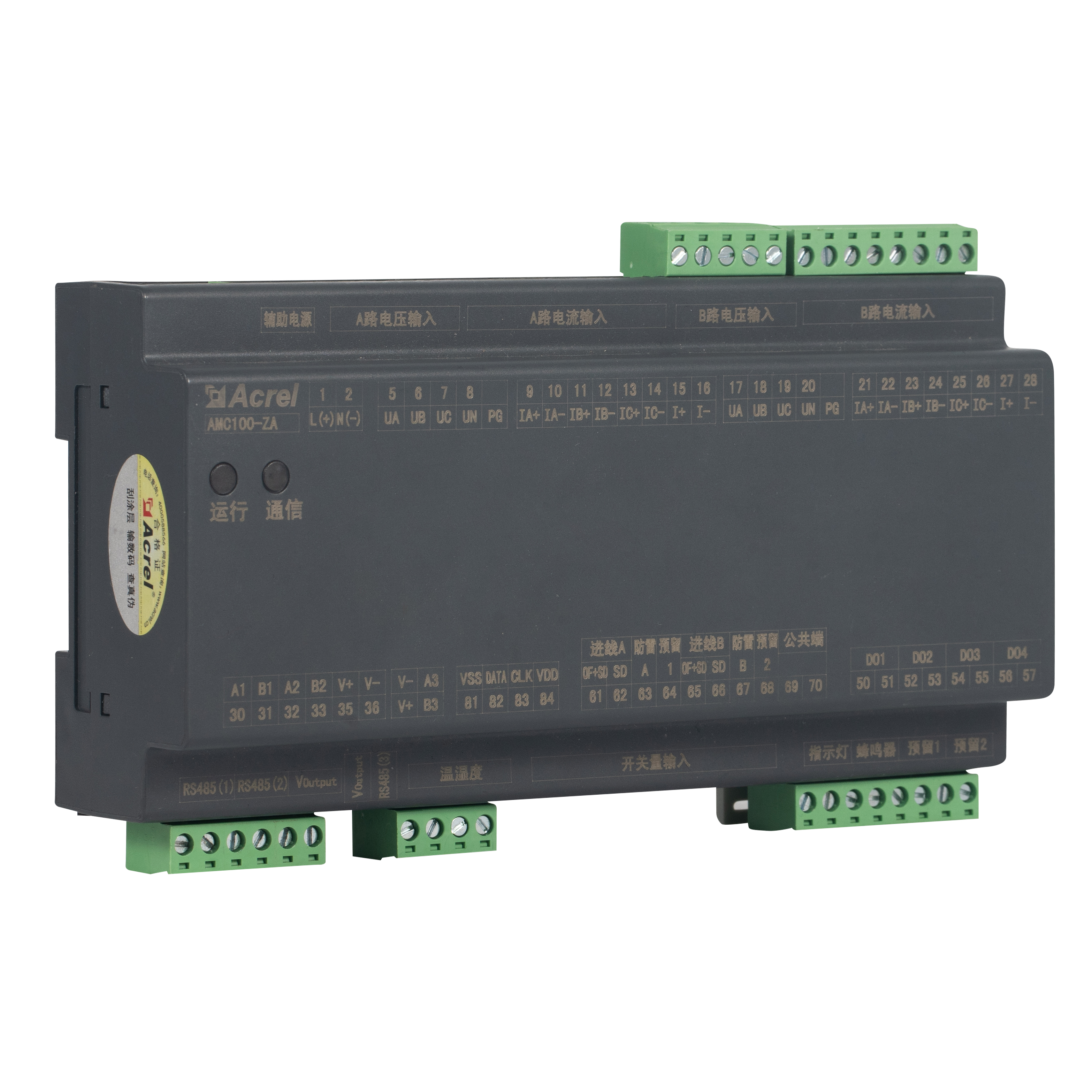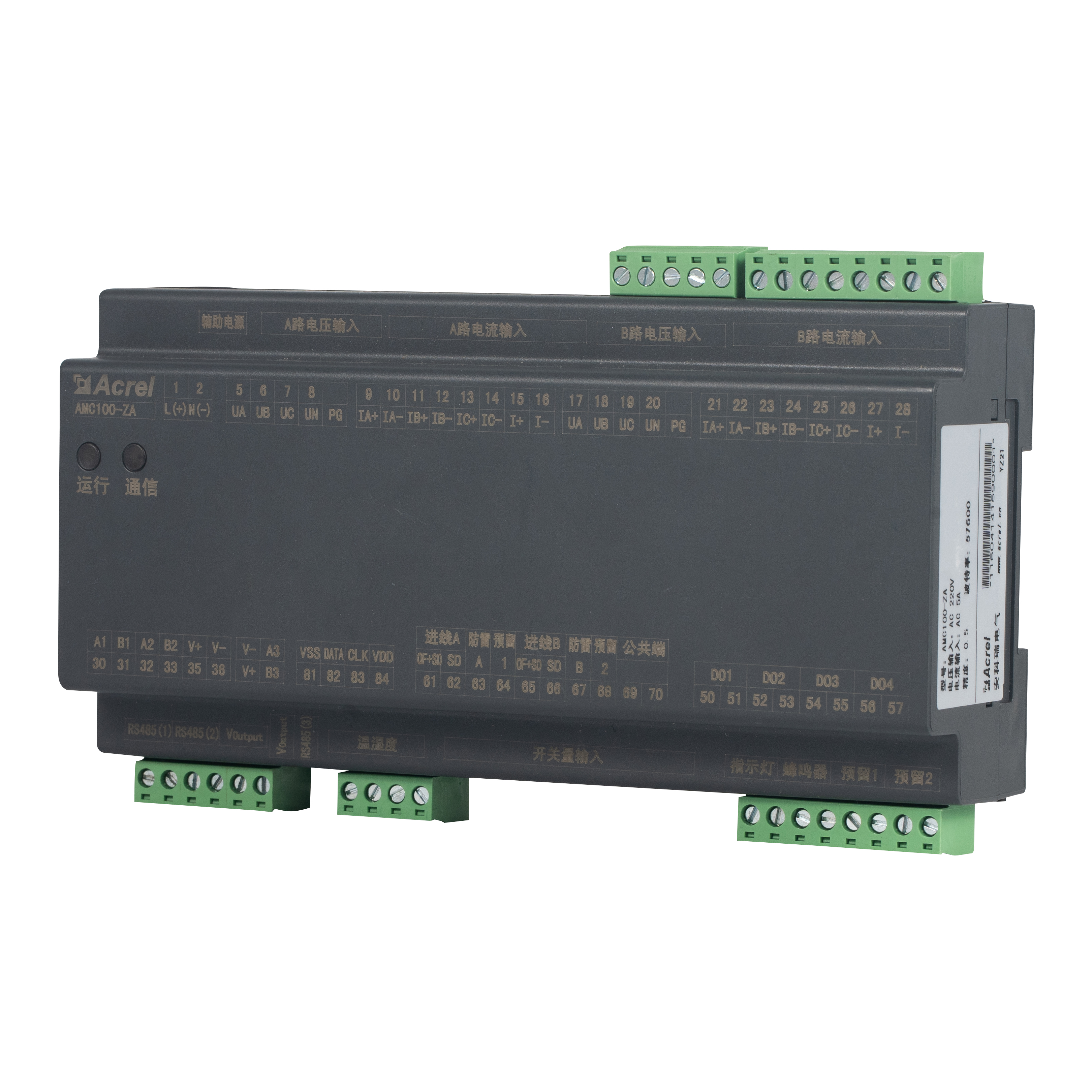 AMC100-ZA là thiết bị giám sát phân phối nguồn chính xác DIN-rail AC của Acrel được thiết kế cho giá đỡ máy chủ trung tâm dữ liệu. Nó đồng thời theo dõi đầy đủ các thông số điện của nguồn cấp kép ba pha A B, 192 mạch ra, 8 điểm trạng thái DI/4 DO, 2 kênh rò, 1 cảm biến nhiệt độ-độ ẩm và 63 sóng hài. Ba cổng RS485 Modbus-RTU cho phép tích hợp BMS/DCIM liền mạch. Vỏ 180 mm nhỏ gọn, độ chính xác ±0,5 %, ngưỡng cảnh báo trên mỗi kênh và cảnh báo ánh sáng âm thanh tức thì giúp giảm lãng phí năng lượng và thời gian ngừng hoạt động, khiến nó trở thành trung tâm có thể mở rộng của các giải pháp giám sát PDU hoặc busway AC của trung tâm dữ liệu xanh.