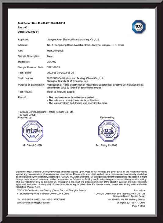 Cơ sở sản xuất của công ty, Jiangsu Acrel Electric Manufacturing Co., Ltd., tuân thủ các tiêu chuẩn chất lượng nghiêm ngặt và hướng dẫn về môi trường, với các trung tâm thử nghiệm tiên tiến và cam kết về quy trình sản xuất không chì. Đội ngũ hơn 500 kỹ sư của Acrel cung cấp các hệ thống tiết kiệm năng lượng tiên tiến và các giải pháp năng lượng thông minh.