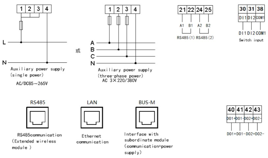 | Nguồn điện phụ trợ | Điện áp | Nguồn điện ba pha 3*220V/380V (đối với nguồn điện một pha, các đầu nối ngắn mạch 1, 2 và 3 trên thiết bị) |